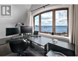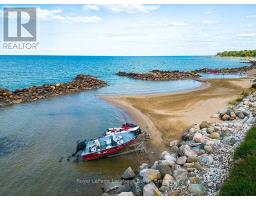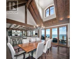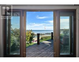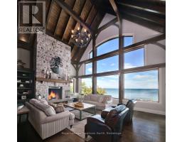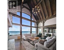 An Exclusive 200ft Sandy Shoreline Retreat on Lake Drive, Thornbury. Discover the ultimate waterfront sanctuary, where 200ft of rare sandy beach meets the sparkling blue of Georgian Bay. In a region known for its rocky shoreline, this remarkable stretch of sand offers an unmatched setting for swimming, paddle boarding, and boating all just minutes from downtown Thornbury and nearby private ski and golf clubs.Spanning over 7,500 sq. ft., this exceptional custom home is designed for gathering family and friends in comfort and style. The vaulted 26ft ceilings in the great room with exposed beams, floor-to-ceiling windows, and a grand Rumford fireplace captures the essence of relaxed luxury, framing breathtaking bay views at every turn.The chefs kitchen blends elegance and function with soapstone countertops, high-end appliances, a coffee bar, and a large island for effortless entertaining. It flows seamlessly into the dining area and out to a balcony with glass railings the perfect spot for morning coffee or sunset dinners overlooking the water.The primary suite offers a private wing of serenity with a cozy sitting room and gas fireplace, water-view deck, walk-in closet, and a spa-inspired ensuite with marble finishes and steam shower. Functional touches include a laundry and mudroom with dog wash, and direct access to the 3 level garage with mezzanine storage. Upstairs features two guest bedrooms, two 3-pc baths, a flex space, and a home office with inspiring views.The walk-out lower level extends the living space with heated floors, a recreation room, four bedrooms, and two full baths, opening directly to the patio and beach. Step outside to 200ft of pristine sand, a hot tub overlooking the bay, and total privacy to unwind after a day of golf or skiing.From sunrise paddles to starlit nights by the water, this extraordinary Thornbury residence is more than a home its a legacy on the shores of Georgian Bay. (id:50886)