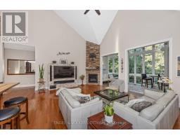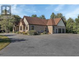 Nestled on a lush, private two-acre lot at the end of a peaceful crescent, this captivating bungalow-loft offers the perfect blend of serene country living and modern convenience - just minutes from shopping, dining, and essential amenities. Step inside to discover an open-concept layout bathed in natural light through a soaring solarium wall and cathedral ceilings in the spacious great room. The gleaming chef's kitchen features granite countertops, stainless steel appliances, and a stylish built-in bar ideal for effortless entertaining. Enjoy cozy evenings beside one of two elegant fireplaces, or retreat to the main-floor office - perfect for working from home. Two luxurious primary suites each include a private ensuite, while an additional bedroom with its own bath makes hosting guests a breeze. Upstairs, the snug loft invites you to curl up with a book. The mud room is conveniently located with laundry next to oversized two car garage. The walkout lower level expands your living options with a games room, gym, family lounge, plus another bedroom and bath designed for privacy and versatility, whether for in-laws, teens, or a guest suite. The outside, mature gardens, walking paths, and towering trees create a nature lovers oasis, and the furnished patio beckons you to star-gaze on warm summer evenings in your private, neighbor-free sanctuary. With ample storage and show-stopping curb appeal, this remarkable home is more than just a house - it's a lifestyle. Don't miss your chance to own this rare country retreat. Schedule a private showing today to experience its charm first hand! (id:50886)