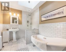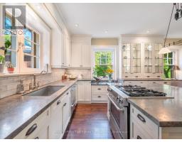 A rare opportunity to own one of Old Oakville's most iconic heritage estates, masterfully restored and ideally situated just steps to the lake and downtown. This distinguished Georgian brick residence offers timeless elegance with modern sophistication featuring a traditional centre hall plan with high ceilings and a dramatic staircase suitable for a stately home. Large Living Room with open gas fireplace leads to beautiful south-facing sunroom with clay tiled floors overlooking the garden. Large Formal Dining opens to the gourmet kitchen which equipped with marble counters, furniture quality cabinetry, premium stainless appliances, oversized island and bar/servery. Mudroom entry from the driveway and detached 2 car garage. Main floor Den & Powder Room. Glorious leaded glass windows, period fixtures, three fireplaces and oak hardwood flooring, hand rubbed with tung oil. Each spacious bedroom boasts a private marble ensuite. Enjoy lake views from the Primary Bedroom Sunroom. 2nd floor Laundry Room. Full walk-out lower level retreat features tumbled black marble and hardwood floors, exposed brick, an open concept Family Room with gas fireplace, 2nd mudroom entry, wine cellar, Bedroom with full bathroom including original cast-iron bathtub. Stunning, fully landscaped & irrigated 104' x 104' lot. Newer roof, HVAC, electrical and mechanicals. Detached 2 car garage. A true legacy property in one of Canada's most desirable and prestigious neighbourhoods. Just one block to the Oakville Club. Don't miss! (id:50886)