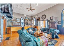 Welcome to 18630 Loyalist Parkway in beautiful Prince Edward County a truly unique property that combines historic charm with modern comforts. Originally built in 1912 as a church, this one-of-a-kind residence has been thoughtfully converted into a stunning two-storey home, offering a distinctive character that's rarely found on the market. Set on a generous lot, this home boasts over 1,500 sq. ft. of living space designed to balance open, airy spaces with intimate, cozy corners. Step inside to a welcoming main foyer that leads to a bright and spacious living room, featuring high ceilings and a stunning fireplace feature. The main floor also includes a sitting room, along with multiple versatile spaces, perfect for a home office, reading nook, or hobby space. The formal dining room is perfect for family meals, and flows seamlessly into the well-appointed kitchen, ideal for cooking, entertaining, and gathering with family and friends. Completing the main level is a 4-piece bathroom and a separate laundry room. Upstairs, you'll find a large primary suite that features a 3-piece ensuite bathroom, walk-in closet, and loft balcony overlooking the main living room. Two additional bedrooms provide space for family or guests, and are complemented by abundant natural light throughout. Outside, the back deck leads out to the large backyard, which offers plenty of room for gardening, outdoor entertaining, or simply enjoying the serene countryside setting. The property features a detached garage with space for two vehicles, and an abundance of driveway parking. Perfectly positioned just minutes from local amenities, wineries, parks, and all that Prince Edward County has to offer, this home offers a rare opportunity to own a piece of history with the flexibility and style of everyday living. This historic gem is ready for its next chapter! (id:50886)