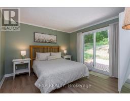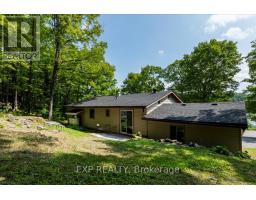 Welcome to your beautiful year-round home that perfectly balances comfort, privacy, and natural beauty. Nestled on nearly an acre of landscaped property, this meticulously maintained, move-in ready 3-bedroom home offers stunning panoramic views of the surrounding forest and owned waterfront on Frau Lake. Designed for everyday living, the open-concept layout features soaring beamed ceilings, a bright family room, and a newly refreshed eat-in kitchen with thoughtful finishes. The primary suite is a true escape with a large bay window framing the peaceful lake views and a walkout to the backyard for easy access to quiet mornings or starlit evenings. Nearly every room captures a connection to the outdoors, creating a seamless flow between interior and exterior spaces. Step outside to enjoy the extensive yard featuring a stone walkway, firepit area, and a 1 car detached workshop with its own hydro panel, perfect as a work space or for hobbies and storage. The attached garage and dual driveways offer ample parking for guests and recreational vehicles alike. Recent updates ensure peace of mind, including a new roof (2025), septic (2021), electrical (2021), bathroom renovation (2022), primary bedroom renovation (2023), garage door (2023), kitchen updates (2025), and new eaves, fascia, and soffits (2025). While the home itself offers privacy and comfort, you'll also enjoy direct access to tranquil Frau Lake- a private lake ideal for swimming, paddling, fishing or simply soaking in the views from your own sandy shoreline. Located just 8 minutes from Highway 11 and downtown Bracebridge, this property combines the best of modern living, peaceful surroundings, and small-town charm. (id:50886)