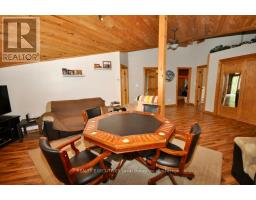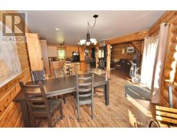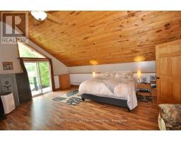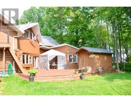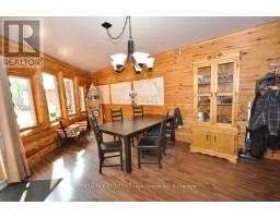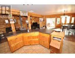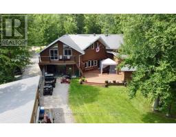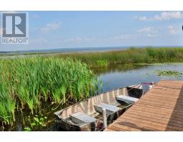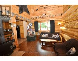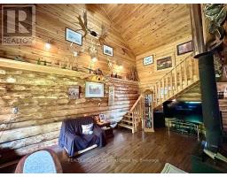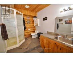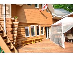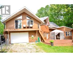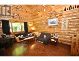 Experience the ultimate in waterfront living with this impressive log home on the shores of Lake Nipissing. The open-concept main level features a soaring vaulted ceiling over the living room, large windows and sliding glass door looks out to the water. A warm slab-on-grade foundation with efficient in-floor heating keeps the house warm along with a wood stove providing cozy ambiance. Upstairs offers three large bedrooms plus a generous recreational room, providing space for family and guests alike. The primary bedroom has a deck, that offers views out over the lake. A 24' x 45' attached garage also with in-floor heating offers incredible versatility, complete with drive-through doors for backyard access and a full 3-piece bath. Outdoors, the property is designed for year-round enjoyment, featuring a spacious back deck with a covered BBQ area, a dedicated hot tub building, and a full-sized sauna. For additional storage, there is a detached garage for recreational equipment or workshop space. At the waters edge, you will find a greenhouse, a pavilion overlooking the lake, a private boat launch, and a U-shaped dock with deep water suitable for larger boats. The natural break wall offers excellent protection, allowing you to keep your boat in the water all summer. This rare offering combines the craftsmanship of a log home with exceptional waterfront amenities, making it an ideal retreat for both relaxation and adventure. No taxes for lease land. (id:50886)
