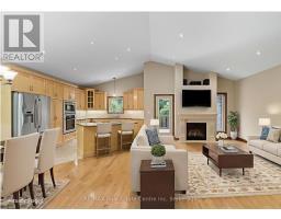 Welcome to 19-15 Valley Road in Valley Road Estates, one of Guelphs most prestigious streets and neighbourhoods. This stunning custom-built bungalow offers over 3500 sq ft of the perfect combination of luxury, functionality, and timeless design. Boasting 3+2 bedrooms and 3 full bathrooms, the home is crafted with both everyday comfort and memorable entertaining in mind. The main level showcases a bright and open layout, highlighted by a spacious Great Room where oversized windows fill the space with natural light. A striking gas fireplace creates a warm focal point, while the adjoining chefs kitchen impresses with maple cabinetry, granite countertops, a large island with seating, and heated ceramic tile floors. From here, step out onto the expansive back deck complete with a gas BBQ hook up perfect for enjoying summer nights with family and friends. The main floor also includes three well-appointed bedrooms, including a serene primary suite with its own spa-like 4-piece ensuite featuring an air jettub and heated floors. Convenient main-level laundry is tucked beside the double car garage entrance. The fully finished basement extends the living space with two additional bedrooms, a 3-piece bathroom, and a cozy recreation room anchored by another gas fireplace ideal for hosting or unwinding. Thoughtful details throughout, such as hardwood flooring, solid oak trim and doors, and quality finishes, speak to the homes craftsmanship and care. Surrounded by mature trees and greenery, this property is tucked away in a peaceful enclave while still offering easy access to Guelphs amenities. A rare opportunity to own a home of this caliber in Valley Road Estates - don't miss it. (id:50886)