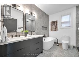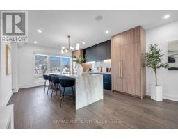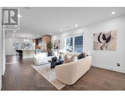 Stunning two-storey custom home in a family-friendly, walkable neighborhood with mature trees. Featuring 4 bedrooms, 3.5 bathrooms, and a Scandinavian-inspired kitchen with a large waterfall quartzite island, induction cooktop, and panel-ready appliances. The open-concept main floor boasts 9-ft ceilings, large windows, hardwood and porcelain flooring, two living areas, dining space, and plenty of custom storage. Upstairs, the primary suite offers a spa-like 6-piece ensuite, plus three additional bedrooms and two more bathrooms. Luxury touches include gold-accented fixtures, motorized curtains, electric fireplace, in-ceiling speakers, a mezzanine, and a garage with Tesla EV charging. Security is advanced with automated entry and multiple cameras. The unfinished basement has a separate entrance, and the large front and backyards are perfect for relaxing. Close to schools, shopping, highways, Ajax GO station, and the waterfront. Modern comfort, style, and convenience-all in one home! (id:50886)