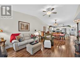 This pristine 'Yorkshire' model Ranch Bungalow is being offered for resale for the very first time. Meticulously maintained and designed for comfortable, effortless main level living in the highly sought-after Parkbridge Wasaga Meadows 55+ Adult Community. Bright & open-concept offering 1,200 sq.ft. with 2 spacious bedrooms and 2 full bathrooms. The beautiful kitchen features a large island, modern skylight, under-cabinet lighting and elegant Tiffany light fixtures. The living room offers a built-in entertainment centre with custom cabinetry, a cozy gas fireplace with a convenient separate thermostat and direct access to your private east-facing patio-perfect for your morning coffee, overlooking mature evergreen trees. Enjoy sunsets on your west-facing covered front porch. The lovely primary bedroom suite boasts a generous walk-in closet, a second closet, a 4-piece ensuite featuring a Safe Step walk-in tub with jets for superior therapeutic comfort and safety and a lovely Tiffany light fixture. The second 4-piece bathroom enjoys a convenient walk-in shower and a skylight. The generous single-car garage includes built-in shelving and an inside entry. The extra-large hot water tank is 3 years new & owned, and the HRV system is included for enhanced comfort. Optional amenities (including a Beach, 2 Swimming Pools (1 outdoor, 1 indoor saltwater), Splash Pad, Fishing, Hiking, Mini Golf, Multipurpose Sports Fields, Playground, Basketball, Tennis & Volleyball courts) are all available for an affordable annual fee of $150 + HST- if desired. Fees: Land Lease - $800, Structure Tax - $153.99, Lot Tax - $49.39. This beautiful bungalow is ready for you - Welcome Home! (id:50886)