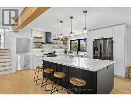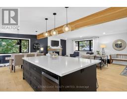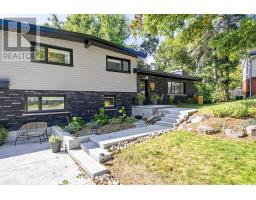 Beautifully updated throughout, tastefully decorated and in turn key condition. Exceptionally bright and airy open concept main level boasting newer kitchen with oversized island, wood fireplace and terrace doors to rear deck and parklike yard. Desirable west end cul-de-sac location backing onto Westmount school and walking distance to PRHC. This spacious 5 or 6 bedroom home offers flexible functionality ideal for extended family, multi generational purposes or work from home office. Three bedrooms on upper level, primary bedroom enjoys private deck. Oversized main level foyer/mudroom with garage access. Lower level family room offers a space for kids to escape to, home gym and cold cellar. Updates include: newer membrane roof, hardwood flooring, soffit and facia, complete kitchen renovation, oversized concrete driveway and walkway, front door and terrace doors and extensive rear decking. (id:50886)