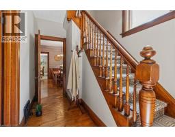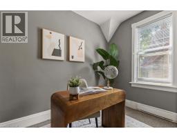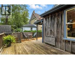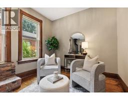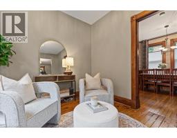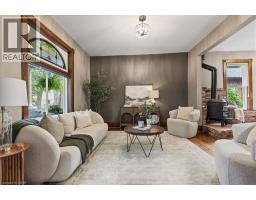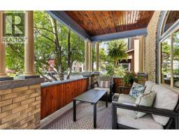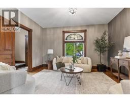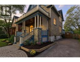 Set in the heart of Kitchener's crown jewel—Victoria Park—this pristine Berlin-vernacular residence at 19 Richmond Avenue offers a rare blend of historic charm and modern elegance. Tucked along an Avenue lined with brick heritage homes that border the lush greenery of the park, this property promises tranquility amid urban convenience. The exterior showcases timeless appeal, with its signature two-story porch spanning the full width of the home—a hallmark of Berlin-vernacular architecture. Arched windows framed by soldier course brickwork and original stained glass accents add character, while symmetrically placed gabled roof peaks create a balanced, picturesque silhouette that stands out. Step inside to discover an interior where heritage meets contemporary comfort. Soaring Victorian ceilings and tall, well-maintained original windows (complete with storms) flood the space with natural light, complemented by rich hardwood trims and restored pine floors. The gracious main-floor layout offers a sleek, modern eat-in kitchen with black stainless steel appliances; an ample dining room inviting memorable dinner parties; a cozy family room with a wood-burning fireplace for rustic warmth; and a formal living room provides an elegant retreat. Seamless indoor-outdoor living whether through the covered front porch or the expansive, restored rear deck, both offering serene views of Victoria Park. Upstairs, three comfortable bedrooms await, alongside a luxurious three-piece bathroom. A bonus walk-up attic serves as versatile recreational space. The basement expands your living options with a sizeable rec room, an updated electrical panel (fully rewired with ESA certification, neatly framed), and a mechanical room providing storage and laundry. 19 Richmond Avenue is more than a home—it's a unique piece of Kitchener's history, that places parkside serenity at your doorstep with access to the LRT and future transit hub. (id:50886)
