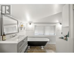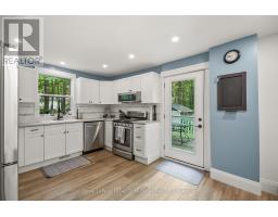 **FULLY RENOVATED IN-TOWN BRACEBRIDGE HOME **This beautifully rebuilt 3bdrm home in the heart of Bracebridge blends modern upgrades with Muskoka charm, surrounded by mature trees and privacy. Stripped to the studs and reimagined with over $150,000 in professional renovations (all with permits and certified contractors), every detail has been designed for comfort, efficiency, and style. The main floor features a brand-new living room with pot lighting, a custom fireplace with Napoleon insert and recessed TV box, and a stunning staircase crafted from 100-year-old reclaimed hemlock with glass inserts. Luxury vinyl plank flooring runs throughout, complemented by a ducted natural gas furnace for efficient heating. The bright kitchen opens to a tranquil 3-season Muskoka room, leading to a private deck, firepit, and fully fenced in backyard, perfect for entertaining or relaxing. Upstairs, the primary and second bedrooms are newly built, each with custom closets and pot lights, while the primary also includes a recessed TV box. SO MANY UPGRADES to mention (new roof in 2021, updated insulation, plumbing, electrical, windows, smart thermostat, and all appliances are <3yrs old). With space to add a powder room on the main floor or a garage on the lot, there is room for future growth. So central, so convenient. This home offers both modern convenience and timeless Muskoka character.- ready to move in and enjoy! (id:50886)