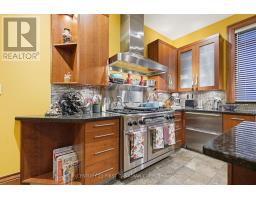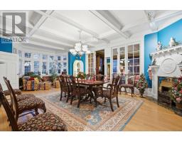 The two-and-a-half-storey red brick house at 191 Cheapside Street reflects a typical late Edwardian style, but on a grander scale that allows for striking architectural flourishes. Hallmarks of the style include a hipped roof with cross gables, tall corbelled brick chimneys, a large front gable over a projecting wall, and a broad porch that wraps around the west side. Notable features include broad eaves with large modillions, intricate half-timbering in the gable apse, a Palladian window-door opening onto a balustraded balcony, and an octagonal Scottish dormer with sash windows. The porch features Ionic columns with limestone bases and red sandstone trim, and a balustrade with narrow balusters.The front entrance is particularly distinctive, with bevelled glass in the oak-framed door, sidelights, and elliptical transom, topped by a cylindrical bay window. These features are highlighted against a purposefully subdued backdrop: red brick with red mortar, minimal stone contrast, and orderly sash windows. Red sandstone trim appears in window sills, voussoirs, and along the limestone foundation.Additions to the house, including a flat-roofed sunroom and a 2008 rear extension, are faithful to the original design, replicating key details such as brick colour, eaves, and modillions. The property benefits from its setting on the wide, boulevard-lined west end of Cheapside Street. The current owners have developed a formal Renaissance garden in front, enclosed by a metal fence and visually linked to the house by shared architectural motifs like half-timbering. A driveway on the west leads to a two-car garage that echoes the main houses design.The house sits approximately 7.25 metres from the front property line and 22.5 metres from the street. (id:50886)