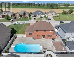 Custom built home located on a quiet oul-de-sac in a sought after neighbourhood in Tecumseh. Features 3 Bedrooms & 3 Baths, spacious foyer, lrg eat-in ktchn w/custom cherry wood cabinets, liv rm & dining rm w/ 11 ft ceilings & main flr laundry. Primary bdrm is complete w/ ensuite & jacuzzi tub as well as his & her walk-in closets. Heated in-ground salt water pool, shed, 2 car garage, massive circular concrete driveway, vinyl fence & sprinkler system. Min from Vista Academy, EC Row, LG Plant. (id:50886)