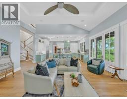 A rare offering of timeless coastal elegance and modern sophistication, this 2-year-old waterfront estate captures the essence of Hamptons-style living finished with natural Indiana limestone stones and pillars. Set on an extraordinary 102' waterfront lot with sandy beach and armor stone shoreline, this residence is as much a retreat as it is a home. Spanning over 7,500 square feet across three distinct living areas, the property offers both grand entertaining spaces and private sanctuaries. Five luxurious bedroom suites, 4 of which having its own spa-inspired ensuite, are complemented by 6.5 bathrooms, creating an atmosphere of effortless comfort for family and guests alike. Expansive walls of glass invite natural light and frame breathtaking water views, while soaring ceilings, custom millwork, and refined finishes evoke a sense of understated luxury. Multiple gathering rooms, formal and casual dining, and a chef's kitchen designed for culinary excellence provide the perfect balance of sophistication and livability. Providing flexibility for multi-generational living, private guest quarters, or luxurious entertaining spaces with 3 distinct living areas. Sit on the covered porch which is an idyllic setting for morning coffee, sunset cocktails, or summer gatherings by the shore. This is more than a home. It is a statement of lifestyle, a Hamptons-inspired waterfront haven designed for those who value beauty, serenity, and distinction. (id:50886)
