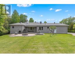 MOTIVATED SELLERS. Beautifully maintained full brick Bungalow sitting on a private 4.23 acre lot backing onto Bank St. This custom built home features an open concept layout; vaulted ceilings, recessed lighting, 3 Beds, 3+1 baths, beautiful hardwood flooring and easy access central vac throughout. Awe-inspired kitchen boasts custom cherry wood cabinets, with granite countertops featuring a peninsula with a raised bar, pots & pans drawers, pantry room, under cabinet lighting & stainless steel appliances. Spacious foyer with closet. Living room offers a gas fireplace, attractive niches and large windows to allow natural daylight to fill the home. Primary suite offers a European inspired ensuite boasting a jetted tub, shower, bidet, dual sink vanity & walk-in closet. 2 secondary bedrooms featuring large closets, great natural lighting and hardwood floors. 4 piece bath showcases a tub with tile walls and vanity. 2 piece bathroom off of the garage entryway duals as a mudroom & laundry with upper cabinetry. Perfect lower level entertainment area complete with a kitchen, bar, wine cellar, gym and 3 piece bathroom. Expansive backyard surrounded by mature trees, manicured gardens & well maintained lawns. Interlock walkway, steps & borders. New Garage Doors(white with top windows - July 2025), Septic Maintenance (2025), HVAC (2024), Water Softener (2024), Water Testing (2024), Roof (2022), Propane conversion to Natural Gas (2019), Hot Water Tank (2019) (id:50886)