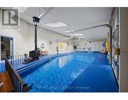 Escape to your own private paradise on this beautiful 1-acre lot, set along a paved country road and surrounded by towering, mature trees. This spacious 2-storey home offers the perfect blend of comfort, character, and resort-style living with over 2,700 square feet of living space, 3 bedrooms, 4 bathrooms, and a stunning indoor pool you can enjoy all year long. Step inside to discover a bright, open kitchen designed for both everyday living and entertaining. Featuring ceiling-height cabinetry, a centre island with breakfast bar, and modern pot lighting, this space flows seamlessly into the breakfast area with a walk-out to the pool-perfect for morning coffee or family brunches. Multiple living areas ensure there's room for everyone: a formal dining room with fireplace, a living room with a second fireplace, and a spacious family room ideal for gatherings. The indoor pool area is truly a showstopper-complete with a sitting area warmed by a wood stove, two clear roll-up doors that open to let the breeze flow through, and patio doors leading to a covered outdoor dining space. Whether you're hosting summer get-togethers or relaxing on a quiet evening, this home was made for enjoying every season. The upper level offers three generously sized bedrooms and two bathrooms. The primary suite is a retreat of its own, featuring a bonus space currently used as a gym and a private 3-piece ensuite with shower. The additional bedrooms are equally spacious, with bedroom three featuring a walk-in closet. A second 3-piece bathroom with tub conveniently serves both bedrooms two and three, completing the upper level. Outside, you'll find a detached 2-car garage, a serene backdrop of mature trees, and endless space to unwind and reconnect with nature-all just a short drive from town amenities. (id:50886)