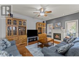 City in the front, country in the back. This custom-built Fernando bungalow, nestled on a ravine lot with lush professional landscaping and a full sprinkler system, exudes pride of ownership. Built in 2005 and meticulously maintained, the main floor features a spacious primary bedroom with ensuite and walk-in closet, a bright second bedroom, a 4-piece bath, and an open-concept kitchen, dining, living area with gas fireplace and practical main floor laundry. Patio doors lead to a large composite deck overlooking green space and forest. The walk-out basement offers a generous rec room with a second gas fireplace, built-ins, and access to the backyard, plus a third bedroom and full bathroom. Additional perks include a large utility/storage room and a cold cellar. Updates include: Roof (~2018), furnace & AC (2021), gutter guards (2021), composite deck boards (2022), and upgraded insulation (2021). (id:50886)