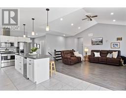 The modern black and grey exterior will draw you to this waterfront home! Built in 2021, 1660 sq ft rancher with double car attached heated garage has an open concept cathedral ceiling design with fireplace in living room. All the main rooms and primary bedroom suite overlook the waterfront. Primary suite has a separate soaker tub and water closet. Concrete driveway, sidewalks, covered deck and 16 x 14 rear patio area, with bar and firepit and hardline for gas bbq. 2 + 2 bedrooms and 3 full baths, 9 ft ceilings, and 10 ft high ceiling in finished basement give this home so many spaces to enjoy. All bedrooms have tv’s hardwired for internet and country cable, antenna in attic.Option for laundry on main floor, roughed in for a 20 amp electric fireplace in basement, 200 amp service , and sump with battery back up. Large rear yard on canal with gabion stone wall on the waterside. Lovely waterfront home call us today to view. (id:50886)