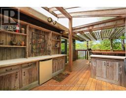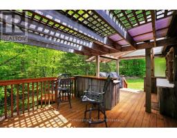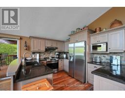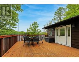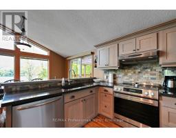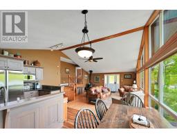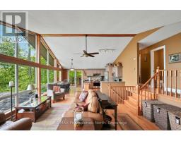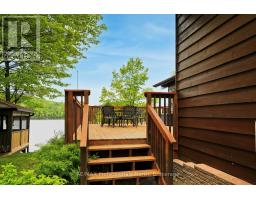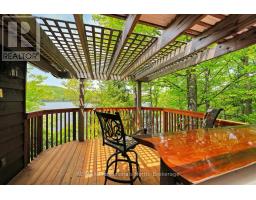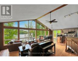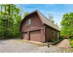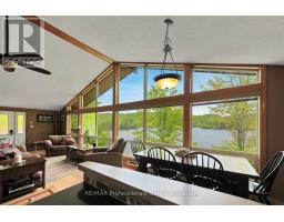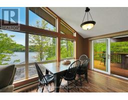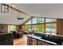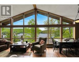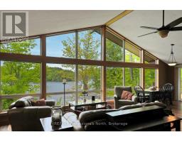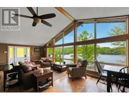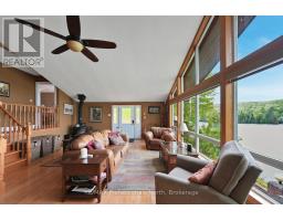 Tucked away on beautiful Esson Lake, this private four-level backsplit offers deep water off the dock, incredible lake trout fishing, and several miles of clean, navigable shoreline to explore. This deep, clean lake is a true gem for those seeking peace, water recreation, and nature at their doorstep. The main level features a bright, open-concept layout with soaring cathedral ceilings, an upgraded kitchen, and wall-to-wall windows showcasing stunning full lake views. A cozy wood stove adds warmth and character, and there is direct access to a lakeside outdoor kitchen perfect for entertaining. Upstairs, you'll find a spacious primary suite with ensuite, a second bedroom, and a convenient 2-piece bath. The lower level includes another guest bedroom, office space, a 3-piece bath with laundry, and a utility room. The walkout basement offers a full rec room with pellet stove and opens directly to the hot tub deck overlooking the water. Enjoy evenings in the screened gazebo with panoramic lake views. An oversized two-car garage with workshop adds year-round functionality, and the finished loft above is ideal for a gym, art space, or yoga studio. Located just minutes from Wilberforce for essentials like groceries, LCBO, gas, and dining, and only 20 minutes from the Village of Haliburton where you'll find additional amenities including healthcare services, restaurants, shops, and schools. This is a rare opportunity to enjoy complete privacy and comfort on one of Haliburton County's most desirable lakes. (id:50886)