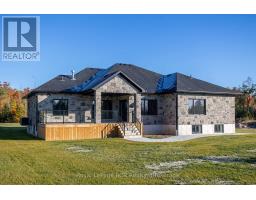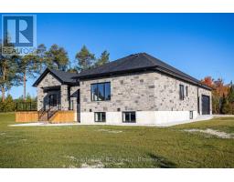 Custom built stone bungalow on 1.8 acres in Forest Creek community. High-end finishes throughout with 2123 square feet on the main level. Grand foyer open to the living room with fireplace, kitchen with island, quartz countertops and separate butlers pantry, dining area with walkout to cedar deck with glass railings. Primary suite with luxury ensuite and walk-in closet, two additional main floor bedrooms and full bath. Entry from the 3 bay garage into a spacious everyday mudroom, separate laundry room and 2 piece bath. Lower level is finished with wet bar in family room, three more bedrooms, dedicated storage room and 4th bathroom. In-floor heat in the lower level, plywood lined mechanical room with walk-up to the trusscore-lined garage. No detail overlooked inside or out. Fibre internet in to house, engineered hardwood on main level, Luxury vinyl on lower level, Navien on-demand water heater. Tarion warranty. Septic north west of house, well south east of house (id:50886)