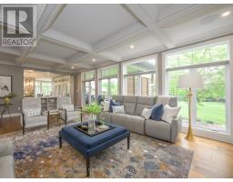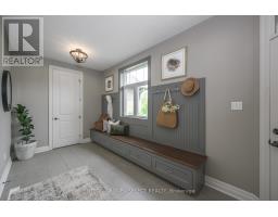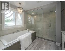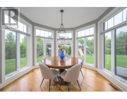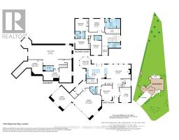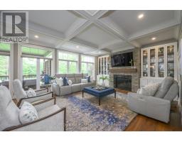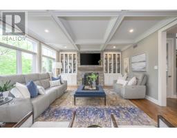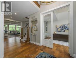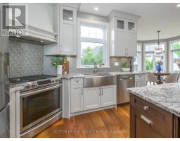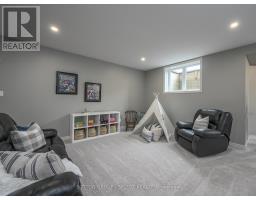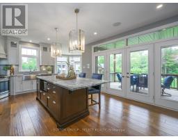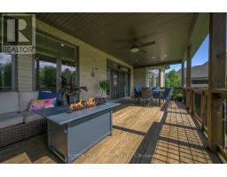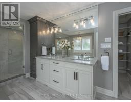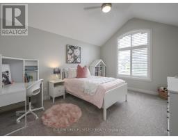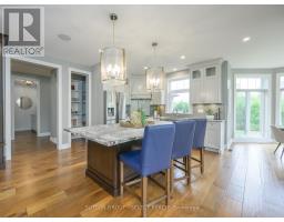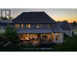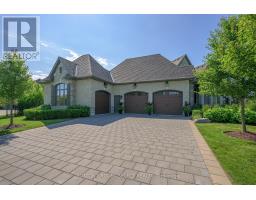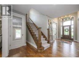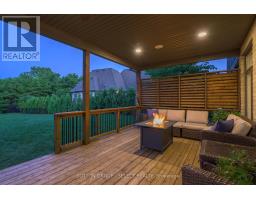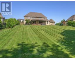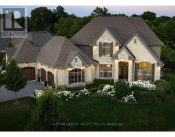 Set within the prestigious enclave of Bournewood Estates, this 2/3-acre property offers privacy and serenity, backing onto lush green space and a tranquil pond. A classic stone-and-brick façade is set back on an emerald lawn framed by perennial gardens and evergreens, creating a lasting impression. Inside, approx. 4,000 sq. ft. above grade plus 1,200 sq. ft. finished below blends generous proportions with thoughtful design. Step into Impressive foyer light fixture crowning the Walnut hardwood, California shutters, and sunlit principal rooms highlight sweeping views of the deep, treed yard. The living room is anchored by a ceiling-height stone fireplace, custom antiqued-mirror curio cabinetry, and coffered ceilings, opening seamlessly to a large kitchen with extensive ceiling-height cabinetry, leathered granite island w/designer lighting, walk-in pantry, and a rotunda-style breakfast room encircled by windows. A private study with cathedral ceiling & wall-to-wall library built-ins, elegant dining room with showcase chandelier and adjacent butler's servery, chic powder room, and mudroom with extended bench seating complete the main floor. Upstairs, four bedrooms each enjoy ensuite access. Double doors lead to the primary suite with walk-in closet and luxe 5-piece ensuite featuring spa tub, dual sinks, and oversized glass shower with bench. A princess suite offers its own 4-piece, while two additional bedrooms share a 5-piece with separate wet-room. Convenient second-floor laundry with upscale cabinetry. The finished lower level provides a large sunlit rec room, full bath, and space for a fifth bedroom. Outdoors, a full-width deck overlooks a sprawling fenced yard with room for a pool and play space, framed by White Pines and cedars for year-round privacy. Oversized 3-car garage. Close to Firerock and The Oaks golf courses, West 5 amenities & restaurants. An estate of timeless architecture and modern luxury in one of London's most exclusive communities. (id:50886)