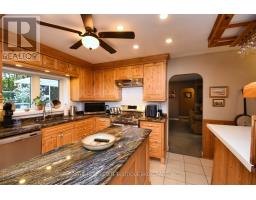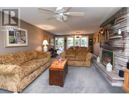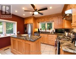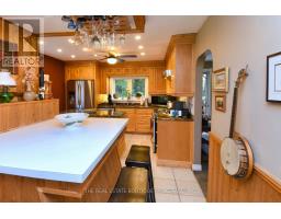 Enjoy the tranquility of 13.5 acres, set well back from the country road and featuring two serene ponds, a private retreat for nature lovers. This impressive one-floor bungalow showcases an airy open layout with expansive windows framing the property's natural beauty. The massive country kitchen is a dream for both cooking and gathering, offering custom cabinetry, two large islands, granite counters, a deep farmhouse sink, a separate dining area, and premium stainless-steel appliances. The spacious living and dining rooms are bathed in natural light and highlight a beautiful stone feature wall with fireplace and built-in cabinetry. A huge deck extends from the dining room, featuring a covered section perfect for outdoor meals and relaxation, which opens to an expansive sun-filled deck overlooking the property. A welcoming front porch adds to the home's charm and creates a perfect spot to enjoy peaceful country mornings. Three bedrooms include a bright primary suite with double closets and a newly designed bathroom featuring glass-enclosed shower and heated floors. The newly finished lower level, accessible by a separate entrance as well, is a bright open-concept space with luxury vinyl wood-look floors. It features three versatile areas currently used as a bedroom/sitting room, recreation room, and games room, along with a full bathroom with heated floors. The massive laundry room offers plenty of cabinetry and houses the home's water-treatment systems. This level is ideal for parties, a teen retreat, or an in-law suite. Outdoors, the property shines with natural beauty and practical amenities, including a newer 60' X 40' garage with three oversized doors, perfect for car enthusiasts, equipment storage, or the ultimate workshop and man-cave. Peace of mind comes with a Home Warranty covering all major systems and appliances. (id:50886)