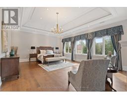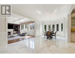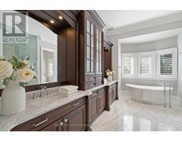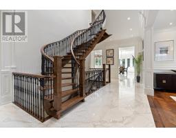 Welcome to this exceptional private residence at 197 Duncan Rd. Professionally designed, this 5+2 bedrooms; 9 bathrooms; sophisticated traditional home offers exquisite craftsmanship. Drive in through the wrought iron electronic gates and be amazed by the beautiful Indiana Limestone/ red new Britain exterior, with scenic lighting, Oversized Solid mahogany doors, 3 car garage and beautiful gardens. The main floor offers: 11' Ceilings, Real Calacatta Marble & White Oak Flooring, open concept with a large foyer and 2 Powder Rooms; a chef's kitchen equipped with high-end appliances and granite counters with a separate Wok Kitchen; Custom Solid Wood Home Office, Large commercial Elevator, an elegant dining area; a great room with floor to ceiling Paneling with beautiful Coffered Ceiling, Two beautiful stone gas fireplace and walk-out access to an entertainer's backyard. The second level includes: an oversized master bedroom offering an expansive primary retreat with a vaulted ceiling; a beautiful fully marbled 5 piece ensuite with a steam shower and heated floors; his-and-hers closet; and 4 additional bedrooms each with a private ensuite with heated floors and a walk-in Closet. Paneling and white oak floors throughout with a beautiful Custom Skylight. The basement provides a 9-foot ceiling height with heated tumbled marble floors, a large recreation area, a home theater, a sauna, a personal home gym, a nanny suite, lots of storage and a walk up to the backyard. This home truly offers unparalleled comfort and elegance with extraordinary attention to detail. (id:50886)