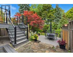 In the heart of Lytton Park on a quiet, tree-lined street, this renovated 4-bed, 4-bath home sits on a rare 204-ft deep lot, offering exceptional privacy just steps from John Ross Robertson Public School. The living room features a bay window, custom shaker-style cabinetry, and a built-in gas fireplace - perfect for relaxed family evenings. The spacious dining room easily accommodates a large table and sideboard, with modern stained-glass windows and a statement chandelier adding a touch of sophistication. The chef's kitchen includes a built-in oven, gas stove, Bosch dishwasher, double sinks under a garden window, and a large island with bar seating and wine fridge. Light stone counters, a herringbone backsplash, and elegant shaker cabinetry complete the timeless look. A breakfast area with walkout to the two-tiered deck and a powder room complete this level. The tiered deck overlooks a Japanese maple, and a deep, private yard bordered by mature trees - ideal for play, gardening, or a future pool. Glass railings and stone steps connect multiple outdoor entertaining areas, including a cozy fire-table patio. The property backs onto Havergal tennis courts for added greenery and privacy. On the second level, the serene primary suite features a picture window overlooking mature trees, a private balcony, custom walk-in closet, and spa-inspired ensuite with river stone tiles and rain shower. Three additional bedrooms share a modern 4-piece bath. A skylight above the elegant, curved staircase fills the home with natural light. The lower level offers a warm family room with gas fireplace, built-in cabinetry, a walkout to the yard, plus an office with a Murphy bed, 3-piece bath, laundry, and direct garage access with a private driveway for 2 cars. Steps to top schools, parks, and the shops of Lawrence Ave W, this home blends style, comfort, and family-friendly living in one of Toronto's most coveted neighbourhoods. (id:50886)