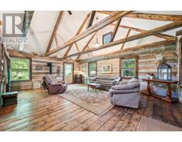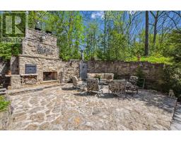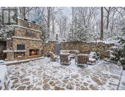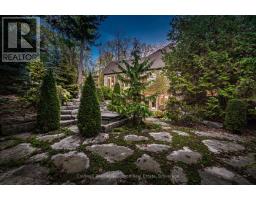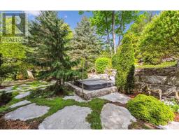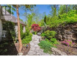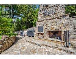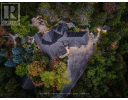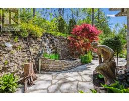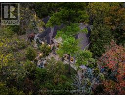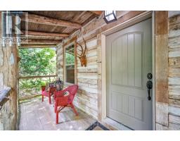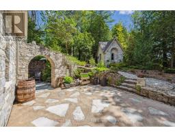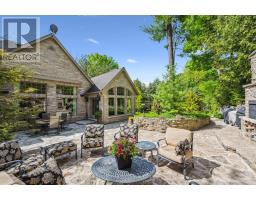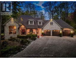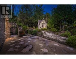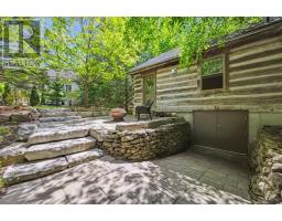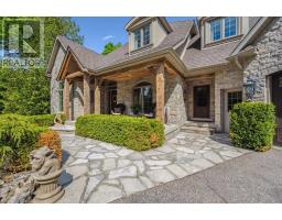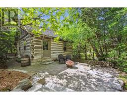 Set against the limestone escarpment on a private 1.1-acre lot at the end of a quiet road in Rockwood, this extraordinary retreat is surrounded by conservation land, offering complete privacy and a deep connection to nature. What began as untouched forest became an architectural masterpiece - the result of over three years of meticulous planning, permitting, and passion. Eighteen feet of rock were carved away to shape the foundation. A centuries-old log cabin from Ariss was carefully deconstructed and reassembled on-site, bridging history with modern innovation. Even the entrance was designed to impress - complete with its own handcrafted bridge leading to the home's grand arrival. Inside, the craftsmanship speaks for itself. Soaring cathedral ceilings, oversized windows, and panoramic forest views create an atmosphere that's both inspiring and serene. The main living area opens onto a European-style stone courtyard, while the primary suite feels like a private spa, complete with a luxurious ensuite and its own tranquil waterfall outlook. Upstairs, two additional bedrooms and a full bath offer comfort and flexibility for family or guests. The walk-out basement opens to a stunning flagstone patio complete with a hot tub - an ideal spot to unwind in total tranquility. Inside, enjoy the well-appointed entertainment level featuring a custom bar and private wine cellar, a pool table area perfect for friendly competition, a theatre room to catch the big game, a dedicated gym space for workouts, a full bathroom, and more. And then there's the historic 550 sq. ft. log cabin - beautifully restored and ready to serve as a guest house, creative studio, or personal sanctuary. Outfitted with a wet bar, gas fireplace, full bathroom, and ample storage, it's a destination all its own. A triple-car garage with lift provides ample room for vehicles, hobbies, and adventure gear, blending practicality with luxury. Schedule a private showing today to experience 198 Pasmore. (id:50886)