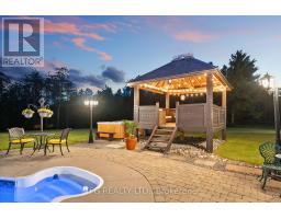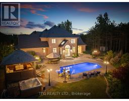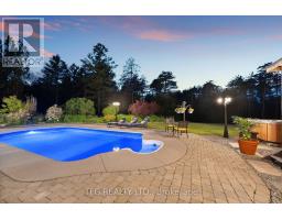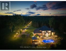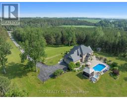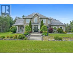 Welcome to an extraordinary opportunity to own a truly one-of-a-kind estate where luxurious living and natural beauty converge---all just minutes from the city. Custom-built by the renowned Storybook Homes and proudly maintained by its original owner, this five-bedroom residence is set on sixty acres of pristine, wooded land in Clarington, offering unparalleled peace, privacy, and distinction---with potential to create a family compound for generations to come. A stately gated entrance leads to a thoughtfully designed home that blends timeless architecture with modern comfort. Expansive, open-concept living spaces are filled with natural light, enhanced by soaring ceilings and large windows that frame picturesque views of the surrounding landscape. Quality craftsmanship and refined details are evident throughout, including an elegant steel roof with a lifetime warranty--- offering both beauty protection. Outdoors, your private oasis awaits... Spend warm days beside the sparkling in-ground pool, recently updated with a new liner, or unwind beneath your imported hand-carved tiki hut. A hot tub, outdoor kitchen, and flourishing perennial gardens elevate the space for both everyday enjoyment and memorable entertaining. Winding trails weave through the property, ideal for scenic walks or ATV rides. Though immersed in nature, the home remains conveniently close to amenities---just fourteen minutes from Costco, minutes to Highway 407 via Harmony or Brock Road, and a short drive to the 401. Families will value the school bus pickup right at the end of the driveway. Additional highlights include a triple-car garage, a paved private road for year-round access, skylights throughout, and high-speed Bell Fiber internet---perfect for remote work or multi-generational living. Offering a rare combination of serenity, sophistication, and accessibility, this exceptional estate is not just a home---it is a legacy in the making. (id:50886)