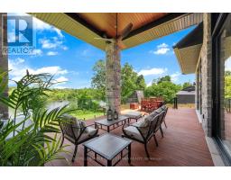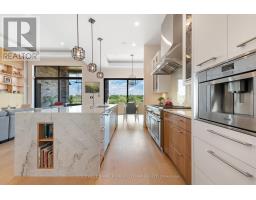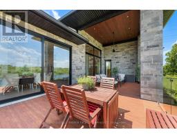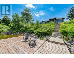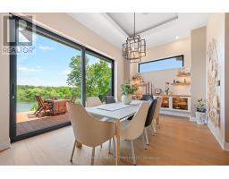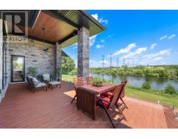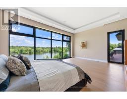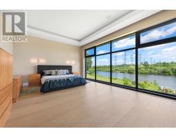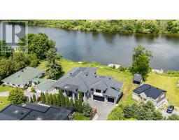 Wake up and come home to herons at this one-of-a-kind waterfront home by award-winning Canterra designer Cosimo Zacconi. Set on a private riverfront, the home blends striking architecture with natural beauty and serene surroundings, offering a peaceful retreat just minutes from city conveniences. Stucco and masonry façades, oversized European windows, and a streamlined roofline welcome you through a 9-foot Sapele wood door into interiors of stone, porcelain, and white oak, accented by black details, geometric lighting, and sweeping river views that fill each room with natural light and a sense of calm. Extensive custom millwork by Marina Medina Design and Exotic Wood of Ottawa provides clever storage and built-in lighting. At its heart, the chef's kitchen features Thermador appliances, a six-burner gas range with induction plates, dual ovens, a 10-foot Tahiti quartzite island, and oak cabinetry. A 13-foot linear fireplace mirrors the kitchen's porcelain detailing under soaring ceilings, anchoring the open-concept living and dining space, perfect for family gatherings, entertaining friends, or relaxing with loved ones. Five bedrooms and 4.5 baths include two spa-like ensuites with oversized showers and marble finishes. The lower level offers two bedrooms, a recreation room with three-sided fireplace, wet bar, and walkout to the covered terrace. Above the three-car garage, a private loft suite with deck and full bath provides ideal guest or family quarters or potential for a home business. Outdoor living features glass-railed decks, covered lanai, and permanent dock along stabilized, naturalized shoreline. From morning coffee to sunset gatherings, enjoy boating, entertaining, or simply relaxing in nature. This home is more than a residence, it is a lifestyle, designed for comfort, modern living, and timeless elegance. Built with insulated concrete forms, it is exceptionally solid, quiet, and energy-efficient. Truly, a once-in-a-lifetime home you will cherish forever. (id:50886)