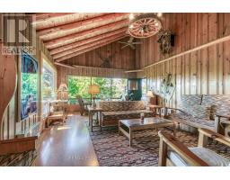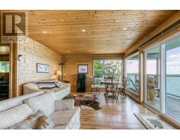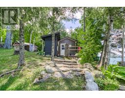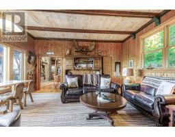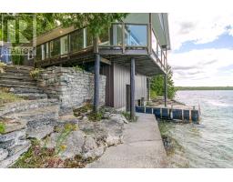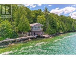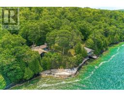 Tucked away at the end of Trillium Trail on the west shore of Sandfield Bay, this magnificent 165-acre estate boasts 4,599 ft of pristine shoreline and unmatched seclusion. The property is surrounded by over 150 acres of mixed hardwood/ softwood bush, featuring majestic maples, oak, ironwood, cedar, and pine. This private retreat, which sleeps 25, offers scenic trails winding through the forest and wildlife throughout. Built in 1961, the main residence exudes rustic charm and timeless character. Original hardwood floors and wood siding frame the cozy and welcoming interior, which includes a stunning two-sided stone fireplace between the dining and living rooms, a cozy kitchen, and a spacious family room featuring a 3rd fireplace. Connected by a breezeway is a separate wing with a grand bedroom warmed by a fourth stone fireplace and access to a utility/laundry room. Aloft area above the main house provides 2 additional bedrooms, while the main level has the master bedroom, a fifth bedroom, and 2 full bathrooms to complete the layout. The expansive deck offers breathtaking views of the bay and the most spectacular sunsetsideal for unwinding or hosting memorable gatherings. Down by the water, a charming boathouse with a glass-front upper level includes two bedrooms, a 3-piece bath, a large sitting area, and a walk-out deck perched above the lake, perfect forenjoying those sunsets. Among the additional amenities are a garage, an electric sauna at the shoreline, a 3500 sq ft concrete lounging deck at the water's edge, and a separate bunkie. Below is an electric boat hoist. The grounds are beautifully landscaped with vibrant gardens and natural stonework. Whether you're fishing right off the deck, going for a kayak, paddleboarding, cliff jumping into the water, enjoying quiet moments in the woods, or creating unforgettable memories with loved ones, this one-of-a-kind waterfront haven offers peace, privacy, and the very best of Manitoulin. (id:50886)