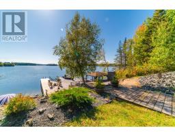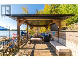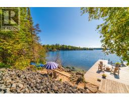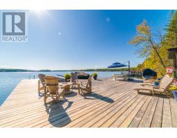 Lakefront Luxury Awaits — South-Facing Paradise on Poplar Bay This road-access cottage is a rare gem and the ultimate seasonal escape. Built in 2000 with pride of ownership, every detail has been cared for to deliver comfort, style, and stunning lakefront living. With 1,600 sq/ft of one-level living, this 3 bedroom, 2 bathroom cottage features vaulted ceilings and large windows that capture breathtaking lake views. The living room offers a wood-burning fireplace with rock veneer and a log mantle, flowing seamlessly to a spacious front deck, perfect for entertaining or relaxing. The kitchen offers ample cabinetry, a large island with seating, and plenty of prep space. Down the hall, two guest bedrooms share a 3-piece bath, while the primary suite boasts a walk-in closet, a 4-piece ensuite, and lake-facing windows. A sunroom provides a quiet retreat, and below the deck, a screened room with a hot tub offers the ultimate relaxation spot. Tiered stairs lead to the water, with landscaped rock gardens, a firepit area, and a covered lakeside seating space with power and storage. A pipe dock with two solar-powered hydraulic lifts makes mooring effortless. A 24’ x 30’ garage stores toys and vehicles, with seasonal sleeping quarters above featuring bunk beds, a TV lounge, coffee station, 2 pc bath, and patio with water views. Heated & cooled by a mini split Additional outbuilding by main cottage is ready for endless possibilities - was originally being built for a golf simulator With metal roofs (cottage 2023), low-maintenance landscaping this is a one-of-a-kind seasonal retreat designed for lakefront living. Property is located on leased land, Lease expires in 2067 Possession: Negotiable Electrical: 200 Amp Heating/Cooling: Woodstove & 2 Heat pumps Annual Lease Assessment Fee: $3012 for 2025 (id:50886)