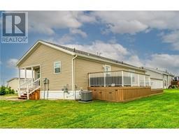 Envision a secure, relaxed Lake Erie life-style at Selkirk’s Shelter Cove Community (under new ownership - Sandusk Creek Properties Inc) bordering the banks of Erie’s Golden South Coast - 45-55 minute commute to Hamilton, Brantford & Hwy 403 - 20 mins east of Port Dover’s popular amenities that inc live theatre & renowned beach front- minutes to Selkirk. Definitely not your average home - this beautiful 2022 “Edgewater” model boasts 1,333sf of beautifully appointed living area highlighted w/premium luxury vinyl flooring thru-out, dramatic cathedral ceilings & stunning hi-end, hard wired electric fireplace complimented w/chic white shiplap feature mantel wall. Positioned proudly on manicured corner lot enjoying pastoral westerly views of fields & Sandusk Creek incs inviting covered front porch providing entry to gorgeous, nautical inspired, open concept living room/dining room segueing to The Kitchen making the most discerning Chef salivate - sporting stylish white cabinetry, contrast light blue island, quartzite countertops, detailed back-splash, full array of hi-end stainless steel appliances & adjacent dinette features sliding door walk-out to impressive, recently built 34x10 tiered composite deck system-2024 enhanced w/zero maintenance railings - completed w/convenient access to large main floor laundry room & furnace (w/AC) room. Continue down roomy corridor past modern 4pc bath, sizeable guest bedroom - onto elegant primary bedroom enjoying lavish personal 3pc en-suite & amazing sized walk-in closet complete with custom organizers. Private north-wing 3rd bedroom includes direct access to insulated, drywalled, pristine attached garage ftrs pull down latter to attic storage + insulated garage door w/auto-opener. Reasonable monthly land lease fees inc property tax, exterior maintenance, lawn cutting, snow removal, use of club house/pool & boat dockage (requires slip application for extra fee). IT'S HERE - Worry-Free, Affordable, One-Level Life-Style has ARRIVED! (id:50886)