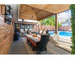 Beautifully maintained detached 4-level backsplit in the sought-after Armbro Heights community! Situated on a generous premium corner lot, this home features 3 good size bedrooms, 2 bathrooms (including a recently renovated bath), separate living and dining rooms, a bright family room with fireplace, and a lower-level games room. Enjoy outdoor living with a professionally landscaped yard featuring stone, cement & interlock walkways, a 2-tier water fountain, landscape lighting, fish pond, salt water inground pool, covered sitting area, BBQ & outdoor kitchen station. Double car garage with double driveway (no sidewalk) - provides ample parking. A perfect blend of comfort, style, and entertaining space in a quiet, mature neighbourhood close to schools, parks & amenities. (id:50886)