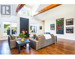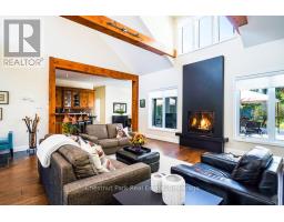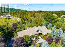 Imagine living just two minutes from Blue Mountain's ski hills, golf courses, shops, restaurants, and everything Collingwood has to offer. Hop on your bike and in 15 minutes you're riding the Pretty River Valley--one of the region's most scenic road cycling routes. Set on a private 1-acre lot in a park-like setting, this executive ranch-style bungalow with 2 car garage offers easy access to the area's best walking and biking trails, making it an ideal base for four-season living. Beautifully landscaped and surrounded by mature trees and perennial gardens, this home offers 2,532 square feet of finished living space, including 4 bedrooms (one currently used as a study), 3 full baths, and a cozy media room. Radiant in-floor heating and a split ductless system ensure year-round comfort. In the great room, a soaring 17.5 vaulted ceiling and wood beams create a sense of warmth and grandeur, anchored by a modern fireplace that draws you in. The open-concept layout blends the great room, gourmet kitchen and dining area, making it perfect for entertaining. Step outside to an oversized back deck with hot tub and covered gazebo--an ideal setting for relaxing or gathering with family and friends. A charming studio at the rear of the property offers a creative hideaway, whether for kids, artists, or as a private retreat. With space to add a pool or dedicated play area, this home offers endless opportunities for outdoor living. Don't miss your chance to own a slice of Collingwood's lifestyle--where comfort, recreation, and nature meet. (id:50886)