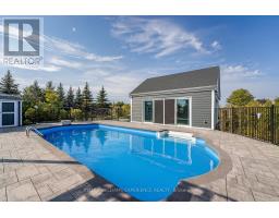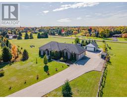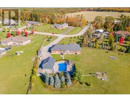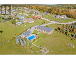 This stunning executive ranch bungalow offers the perfect blend of luxury, space, and functionality - set on a peaceful 2.79-acre lot featuring a triple garage and a 20' x 30' detached shop. Boasting over 4000 sq. ft. of finished living space, this home welcomes you with 9' ceilings, elegant crown moulding, and an open-concept layout ideal for entertaining. The chef's kitchen showcases a large island, granite countertops, and custom cabinetry that flows seamlessly into the spacious dining and living areas. The main floor also features a bright laundry room with walkout access to the garage for everyday convenience. The primary suite is a true retreat, complete with a generous walk-in closet and a spa-inspired ensuite offering heated floors, a glass shower, and a 6' soaker tub. The fully finished lower level impresses with 9' ceilings, an airtight wood stove, two additional bedrooms, a full bathroom, a cantina, and a large open recreation area perfect for gatherings or family fun. Step outside to your private, southwest-facing backyard oasis with a saltwater in-ground pool, firepit, and multiple areas for outdoor entertaining - all surrounded by serene countryside views. A rare combination of craftsmanship, comfort, and lifestyle - this property truly has it all. (id:50886)