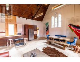 Step into a world of opportunity with this remarkable property a former church ready to be transformed into a truly exceptional residence or creative retreat. Brimming with character and architectural beauty, this one-of-a-kind space features towering vaulted ceilings, vintage stained glass windows, and an open layout that invites your creativity. Much of the heavy lifting has already been done with several renovations completed, including the addition of charming wood siding. The expansive interior layout allows for a potential 3-bedroom, 1-bathroom design, with room to incorporate a spacious kitchen and inviting living areas. A former storage space is ideally sized for a primary bathroom, and an upper loft area offers additional square footage that could be finished for more bedrooms, an office, or a cozy lounge. This property is an excellent fit for investors and visionaries looking to blend historical character with modern comfort. With no rezoning needed to install a kitchen or bathroom (permits required through the township and septic authority), you can bring your plans to life with fewer regulatory barriers. If converting to full-time residential use is part of your vision, a zoning change from Institutional would be required. Bonus: A natural gas line is already available at the lot line and can be connected, offering flexibility for heating and appliances. Located just minutes from Highway 11, this location offers both convenience and peaceful surroundings. Whether you're creating a unique home, a studio space, or an income-generating property, the potential here is unmatched. Own a rare piece of history and shape its future. Book your showing today. (id:50886)