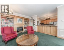 Welcome to Queens Heights one of the areas most desirable bespoke buildings. Carefree condo living at its finest. Large 1722 square ft 2 bedroom, 2 bathroom unit plus a den. A spacious entry foyer with plenty of closet space. Double French doors lead to the formal dining room, oak flooring, plenty of space for your table and hutch plus a wall to wall custom built-in. 0versized living room, good sized kitchen, handsome dark cabinetry, loads of counter and cupboard space, 2 pantries, storage galore. Bright breakfast room, great spot for your morning coffee, next to the main level den, sliding glass doors with California shutters lead to the balcony area. Two bedroom including a luxury sized primary , can easily accommodate a king sized bed, 4 piece ensuite. Second large bedroom, walk in closet, and an additional updated main level bath with walk in shower. In suite laundry room with additional storage space. Appliances included. Fantastic amenities, controlled entry, large lobby, guest suites, party room, billiards, library. fitness area, Fantastic rooftop terrace, BBQ area, underground parking with its very own carwash, Designated parking spot. Exceptionally maintained building, oak paneled hallways, immaculate, award winning summer gardens. Walk to shopping ,dining, Centre in the Square, library, downtown, farmers market, easy highway access. If you are looking for the ease of condo living in a friendly environment without sacrificing the space of a home then this meets all of the requirements. Begin your next chapter here. (id:50886)