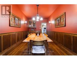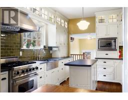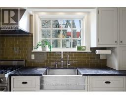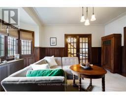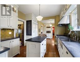 Welcome to Westdale North, one of Hamilton's most sought-after and walkable neighbourhoods-home to this exquisite Tudor Revival residence where classic elegance meets modern comfort. With its timeless angel stone and stucco façade framed by original leaded glass windows, this home immediately captures the eye. Step inside to discover a blend of old-world charm and thoughtful updates: French doors open to refined living and family rooms, while rich hardwood flooring, wainscoting, and period-style lighting create a warm, inviting atmosphere. The kitchen is a chef's dream, featuring custom inset cabinetry, luxurious soapstone countertops, a Sub-Zero fridge, and smart storage throughout, while the dining room enjoys the comfort of in-floor heating. Upstairs, the original wide staircase leads to two upper levels offering five generous bedrooms plus a den/laundry room-three of which have built-in desks, and two boasting beautifully renovated ensuites with heated stone floors and custom vanities. Outside, the award-winning native front garden and private backyard are framed by Credit Valley stone walls, interlocking concrete pavers, and an in-ground sprinkler system. The single-car garage includes inside access, while additional touches like cedar storage closets, a gas BBQ hookup, and a durable concrete tile roof ensure lasting convenience and peace of mind. A rare opportunity to own a true architectural gem in the heart of Westdale-perfectly suited for modern family living. (id:50886)