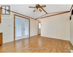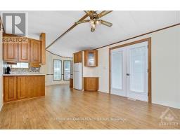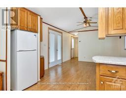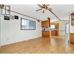 Enjoy the best of country living in Ashton Pines, a sought-after 55+ adult community located just 8 minutes from both Stittsville and Carleton Place. This well-cared-for, move-in ready mobile home offers the perfect blend of comfort and low-maintenance living in a welcoming retirement setting. The spacious living room opens through double doors to a large deck - a perfect spot for morning coffee or hosting friends. The bright eat-in kitchen features generous cabinetry, a gas stove, double sink with a corner window, and a cozy dining nook with a bay-window feel framed by three tall windows. A bonus corner counter with cupboard and display cabinet above adds both style and storage, with easy-care laminate flooring flowing throughout the home. The bedroom includes two closets with built-in shelving and drawers, along with windows on either side that bring in plenty of natural light. A full bathroom completes the layout. Sunlight filters through every room, creating an inviting, cheerful atmosphere. Outdoors, the private yard offers mature trees, lawn space, and a storage shed for convenience. Community amenities include an inground pool, and the pet-friendly environment makes it an ideal place to relax and enjoy a peaceful lifestyle. Key Details: Monthly Lot Fee Approx. $675; Water Testing & Sewer Approx. $41/Month; Annual Property Taxes Approx. $798. Park management approval required. Don't miss your chance to enjoy affordable, peaceful living in a friendly community - schedule your viewing today! (id:50886)