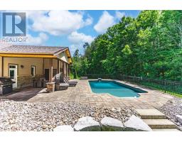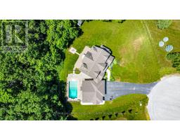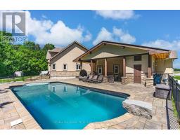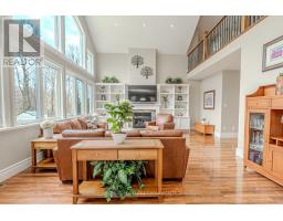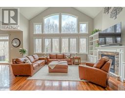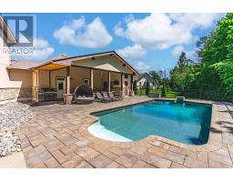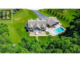 PRESTIGIOUS 2 + ACRE ESTATE WITH OVER 5,200 SQ FT, RESORT-STYLE BACKYARD & A PRIME CUL-DE-SAC SETTING! This extraordinary residence is situated in the highly coveted Wasaga Sands Estates on a private 2.12-acre estate lot with no homes directly behind, backing onto McIntyre Creek and the former Wasaga Sands Golf Course. Nestled at the end of a quiet cul-de-sac, it offers a peaceful setting just minutes from shopping, dining and daily essentials. Curb appeal presents a stone and stucco exterior, a three-car garage, manicured landscaping and a commanding architectural presence. Outdoor living is exceptional, with a heated 18 x 36 ft saltwater pool, a stone interlock patio, a pool house with a bathroom and outdoor shower, and a covered entertaining area. A composite back deck with a hot tub overlooks a private treed yard, while a fire pit, invisible pet fence, and garden shed add further charm. Over 5,200 sq ft of beautifully finished living space includes a gourmet kitchen showcasing white cabinetry, granite countertops, a centre island with a second sink, a pantry, a breakfast bar and stainless steel appliances. The open-concept dining room leads to the great room boasting expansive windows, a gas fireplace and a soaring vaulted ceiling. The main floor primary bedroom features dual walk-in closets, a walkout to the backyard and a spa-like ensuite with a soaker tub and glass shower. An elegant office with built-ins and a vaulted shiplap ceiling, a laundry room with cabinets and sink, and a mudroom with built-in bench, hooks and storage enhance main floor functionality. Upstairs, a sitting area overlooks the great room and connects to three generously sized bedrooms and a well-appointed bathroom. The finished basement, accessible via a separate entrance, adds even more space with a large rec room, two bedrooms, bonus room, and full bathroom. Designed for refined living in a tranquil setting, this remarkable #HomeToStay brings together space, comfort and elegance! (id:50886)