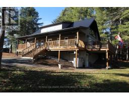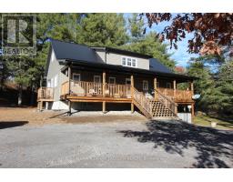| HAVELOCK | Inspired by the timeless A-frame architecture of Norway, this custom-built storey-and-a-half offers 1,816 sq. ft. of thoughtful design, quiet comfort, and efficiency. The welcoming front porch opens to a smartly designed foyer/mudroom with half bath, leading to a bright eat-in kitchen, office and living room. The main-floor primary suite features an ensuite and private walkout. Upstairs, a cozy family room with treetop views opens to a covered porch; perfect for morning coffee or evening unwinding. A second bedroom and full bath complete the level. An unfinished walkout basement offers potential space to grow. Situated on a 150' x 200' lot surrounded by mature pine trees and only a short stroll to the Crowe Lake boat launch. Located 10 minutes east of Havelock and 40 minutes from Peterborough. This could be your escape, tucked amongst the pines. (id:50886)