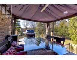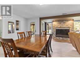 RARE OPPORTUNITY! Custom built raised bungalow on a 1.04-acre lot, offering court location surrounded by protected greenspace. This exclusive, 10 estate court rarely has homes come up for sale and 20 Grandy lane is one that takes full advantage of the natural features, completely backing onto mature forest with direct access to Millcreek conservation land. The home features a stunning all stone exterior with a beautiful retaining wall and carefully set natural stone steps, leading to the front door. The main level layout is wide open with large windows, designed to overlook the backyard from anywhere within the open space and providing access to the elevated multi-level deck completed with composite decking and glass rails. A rich, maple raised panel kitchen sits central with an oversized quartz countertop and raised bar sitting area; elegant crown molding finishes the cabinets to the ceiling with built-in stainless-steel appliances, gas cooktop. Equal in elegance is the built-in family room wall unit featuring gas fireplace insert. A three-sided fireplace separates the dining room from a sunken sitting area providing for an elevated view of the backyard; coffered ceiling accents and hardwood flooring span the space. Completing the space is a large bedroom, laundry, 2-piece bathroom, and the primary suite, complete with walk in closet and recently renovated(2023) 5-piece spa like ensuite. A hardwood staircase leads to the lower level which is still completely above grade; the home was strategically placed to take full advantage of the walkout. Lower level gives access to the oversized, staggered double car garage. Perfectly suited as a multi-generational home, offering three bedrooms, a recently renovated (2023) 4-piece bathroom, recreation room with gas fireplace, and kitchenette along with wet bar. Roof(2024), Additional oversized garden shed for equipment storage. Minutes from the 401, amenities, and schools. Dont miss this truly beautiful property! (id:50886)