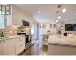 Walking distance to the Lake! This fully finished 3 bedroom, 2 bathroom, 3 level side split has been extensively updated and is move-in ready. Located on a 60 x 112 ft landscaped lot in one of the areas most desirable lakeside neighbourhoods, this home combines modern finishes with family-friendly living.The open concept main floor features a brand new eat-in kitchen with quartz countertops, a centre island with breakfast bar, and custom cabinetry. Garden doors from the dining area open to a private patio, ideal for entertaining. Rich 3/4" oak hardwood flooring flows through the main and upper levels, leading to three spacious bedrooms and a fully upgraded 4-piece bathroom.The lower level includes a cozy family room with wood-burning fireplace, an updated 3-piece bath, rec room, laundry area, and separate side entrance offering additional flexibility. A large crawl space provides ample storage. Outside, enjoy a fully fenced backyard retreat with a hot tub and above ground pool. Recent Updates: concrete driveway & patio (2024), siding, eaves & downspouts (2024), furnace & tankless water heater (2019), dishwasher (2024), hot tub & pool (2020), sand filter (2025), metal roof with transferable lifetime warranty (2005). A rare opportunity to own a turnkey property in an established lakeside community. (id:50886)