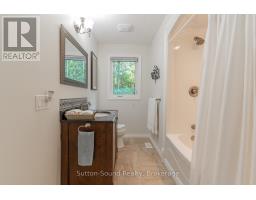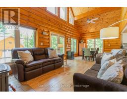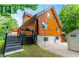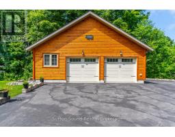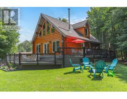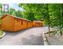One owner, immaculate and fully furnished 4 bed 3 bath Sauble Beach retreat with Fibre Optic Internet and Natural Gas. Over 2100 finished sq ft of living space, situated on a half acre private lot with a large 2 car (600 sq ft)detached, insulated and heated shop/garage. As you drive up the circular, paved drive you will find the most meticulous and well cared for lawn and perennial beds in a completely private setting where you can spend the afternoon under the trees or on the wrap around 800' of no maintenance composite decking with plenty of room to entertain plus a sunken hot tub to enjoy after a long day at the beach. As you enter the gorgeous, low maintenance Natural Log Sided home you will find pride of ownership in every room. The open concept main floor living area is flooded with natural light, compliments of the wall of windows, a bright updated kitchen with white cabinets and black sparkling granite countertops complete with all newer stainless appliances(2022) and high end plumbing fixtures. On the main level you will also find 2 nice size bedrooms, laundry room a 4 piece bath and gorgeous solid maple flooring throughout. Head to the upper level where you will find a large primary suite offering tons of closet/cabinet space, a 4 pc ensuite bathroom and a compact/bright office cove at the top of the stairs. Next find your way to the fully finished lower level to enjoy a relaxing rainy day indoors! Waiting there is a generous size games room with both a pool table and shuffle board (incl), large extra bedroom, office/den and a 3rd 2 pc bathroom. Bathrooms all have high end plumbing fixtures and granite counters. Incase you need extra space to store your lawn and garden tools there is a 10'x16' garden shed plus another 10'x32' fully insulated outbuilding offering another 480 sq ft of space for extra storage or could be easily transformed into bunkies for overflow guests. All you need to do is move in and enjoy! (id:50886)