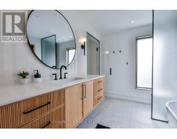 Stunning Mid-Century Modern Masterpiece, Fully Renovated in Prestigious East End. Prepare to be impressed by the flawless execution of high end building. This home has been reimagined with a dramatic 3-storey addition creating a one-of-kind living experience that blends sophisticated, midcentury modern flair with state-of-the art comfort. From the soaring ceilings to the spa-inspired ensuite, every detail has been meticulously curated. Discover unique touches like statement brick wall and sophisticated covered low-slope front entry that enhances the homes curb appeal.Featuring Dramatic, Sun-drenched, open concept, great room with awe inspired aircraft cables and vaulted ceiling gives a sense of volume. The cupola and skylight bathe the area in natural light, highlighting the custom fluted cabinetry of the new designer kitchen and stylish slat wall feature. A true centerpiece, with gorgeous waterfall countertops and ample storage perfect for daily life and grand-scale entertaining. Ascend to your private oasis the master suite features a custom-built king size bed frame and is flooded with light from oversized windows. The lower level spa-like bathroom is a revelation, complete with luxurious stone finishes, soaker tub, custom vanity, steam shower and heated flooring. Enjoy beautiful warm days and cozy evenings on the heated, covered porch, overlooking a spacious backyard adorned with mature trees- a perfect setting for entertaining. Rest easy with a complete suite of new mechanicals, incl: new furnace, a/c, a ducted mini split for optimal climate control. The envelope is fortified with rigid interior insulation, delta wrap water proofing, insulated foundation, new sump pump, and new municipal sewer line, ensuring efficiency and peace of mind for years to come. A rare opportunity to own a bespoke architectural gem. Book your private viewing today. Owner is licensed realtor. (id:50886)
