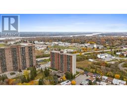 $718.44 MonthlySet high above the city skyline, this beautifully updated two-bedroom residence offers bright, contemporary living with panoramic views stretching across Ottawa's treetops and skyline. With over 900 square feet of well-planned space, this unit features fresh paint and an abundance of natural light, providing a clean slate for your design. The welcoming entryway opens to a spacious living and dining area, where wide-plank hardwood flooring and crisp white walls create a refined, airy atmosphere. Expansive windows and sliding glass doors flood the space with light, leading to a private balcony that's perfect for morning coffee or evening relaxation while enjoying sweeping views from the 20th floor. The kitchen features white shaker cabinetry, dark countertops, a glass tile backsplash, and ample counter space, making meal preparation easy and efficient. The primary bedroom features large windows and a walk-in closet, while the second bedroom has a spacious closet with full-length mirrors. Both have easy access to the 4-piece bathroom, complete with a tiled shower-tub combination, a contemporary vanity, and an illuminated mirror. This home offers access to a full suite of amenities, including an indoor pool, sauna, party room, exercise facilities, and a shared laundry room. Conveniently positioned near the Montfort Hospital, St. Laurent Shopping Centre, La Cité Collegiale, and the NRC campus, this address provides easy access to the Blair LRT station and nearby recreation paths along Aviation Parkway. Whether you're downsizing or a professional looking to get into the real estate market, this apartment checks all the boxes! (id:50886)