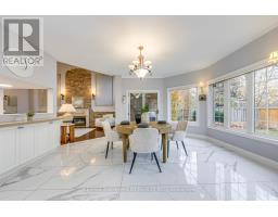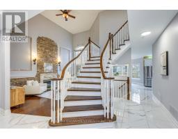 Welcome to this stunning executive residence with 3,181 sqft of above-ground living space (Plus Finished basement). This beautifully upgraded family home offers an impressive blend of elegance, comfort, and functionality in one of Oakville's most sought-after neighbourhoods. From the moment you step inside, soaring two-storey ceilings, expansive picture windows and bright, sun-filled living spaces create a grand yet welcoming atmosphere perfect for entertaining and everyday living. The main floor features multiple gathering areas including a formal living room with dramatic floor-to-ceiling windows, an inviting family room with a stone feature wall and gas fireplace, and a spacious dining area overlooking the backyard. The open-concept eat-in kitchen is designed for both style and convenience with stainless steel appliances, a centre island, stone backsplash, ample cabinetry and a walk-out to the private yard. Upstairs, the luxurious primary suite offers a serene retreat with a large bay window seating area, double closets and a beautifully appointed spa-like ensuite with dual vanities and a glass-enclosed shower. Additional bedrooms are generous in size with premium Harwood custom built-ins, large windows and warm hardwood floors. The fully finished basement extends the living space with an extra bedroom, open recreation room, built-in shelving, wet bar and ample room for a home theatre, games area, gym or playroom. This exceptional home is surrounded by parks, trails and green space, including Neyagawa Park and the picturesque Sixteen Mile Creek Trail. Families will appreciate access to top-rated schools such as Forest Trail, West Oak, Mother Teresa and Garth Webb Secondary, with private options like Appleby College just minutes away. Located close to shopping, restaurants, community centres, Glen Abbey Golf Club, transit and major highways, this home offers the perfect balance of convenience, lifestyle and luxury. (id:50886)
