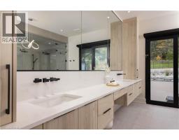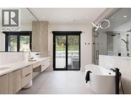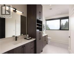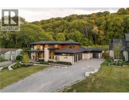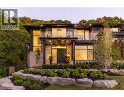 Nestled in the heart of Niagara-on-the-Lake, 2005 York Road is a one-of-a-kind, Portofino-inspired bungaloft offering over 7,500 square feet of luxurious living space. This exquisite residence features oversized garages, 4 bedrooms, 4 bathrooms, and the utmost privacy, backing onto the protected greenspace of the Niagara Escarpment. Seamlessly blending timeless European elegance with contemporary design and cutting-edge smart home technology, the home's open-concept layout showcases soaring ceilings, an expansive European Luxury Aluminum Window System with Premium Reynaer Window System by VIIU, and exceptional craftsmanship throughout. The chef's kitchen serves as the true centrepiece, boasting Thermador appliances, an oversized island, quartz countertops, and custom cabinetry designed for both function and style. The main-floor primary suite occupies its own private wing, offering a serene retreat complete with a spa-inspired ensuite featuring a steam shower, heated floors, and direct access to the backyard. A striking mono-stringer staircase with glass railings leads to the upper loft, which features 2 additional bedrooms, a flex space, a bathroom, a secondary laundry area, and an outdoor balcony with sweeping views of the surrounding landscape. The lower level provides a full walkout to the backyard, expanding the living and future theatre room. Every detail has been meticulously curated, from in-floor heated bathrooms, power shades, a Generac backup generator and a flat roof featuring heat tracers. The professionally landscaped grounds create a private resort-like oasis, complete with an inground pool, hot tub, covered patio with an outdoor kitchen and outdoor gas fireplace. Designed with both comfort and sophistication in mind, this remarkable residence embodies the pinnacle of modern luxury living in one of Niagara-on-the-Lake's most sought-after locations. (id:50886)