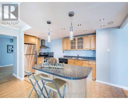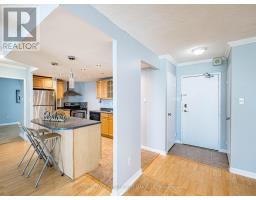 Welcome to this bright and spacious condo nestle on beautifully landscaped parkland with abundant green space and walking paths along the river. This condo features an open concept layout with a living and dining area that walks out to an open balcony offering panoramic city views. The kitchen boasts ample cabinet space, pot lights, an island and ceramic floor. Large master bedroom with walk-in closet and laminate floor. Freshly painted throughout. Ensuite laundry, locker and 2 parking spots. Newer windows and balcony doors (2024/25). Heating and cooling installed in 2021, thermostat (2021), bird netting (2021), main bath fan motor (2021). New bath tub drainer and over flow (2022), p-trap and strainer in kitchen (2022), A/C vertical fan coil (2023). Close to Square One shopping, schools, parks, public transit, highways QEW, 403 and 407 and Cooksville GO Station. (id:50886)