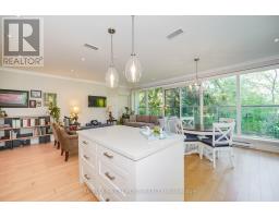 $1,639.24 MonthlyExperience luxury living in this rarely offered 2-bedroom, 2-bathroom residence in a boutique building designed by renowned architect Arthur Erickson. Step directly from the elevator into a marble-tiled foyer, where thoughtful design and refined finishes unfold. The expansive open-concept layout features hardwood floors, 9-ft smooth ceilings, pot lights, and crown moulding throughout. A renovated kitchen impresses with granite countertops, a mosaic tile backsplash, built-in stainless steel appliances, and a large center island with breakfast seatingideal for both everyday living and entertaining.Floor-to-ceiling windows are fitted with custom automated blinds and offer tranquil views of lush greenery next to the ravine trail. A Juliette balcony and a rare private terrace extend the living space outdoors, creating a seamless connection to nature. Bedrooms are thoughtfully separated for privacy, including a generous primary suite with his-and-hers closets featuring built-in organizers, and a stylish 3-piece ensuite. The second bedroom includes a double closet and easy access to the renovated 4-piece main bath.Enjoy the convenience of ensuite laundry and the comfort of central air. Building amenities include a concierge, indoor pool, sauna, fitness centre, car wash, and visitor parking. This suite also includes two owned underground parking spaces and a large locker. A truly rare opportunity in a highly desirable, tranquil setting. (id:50886)