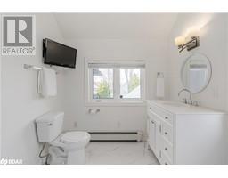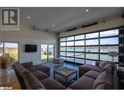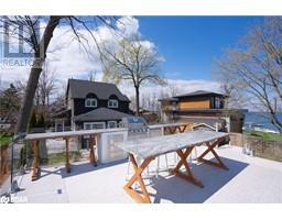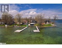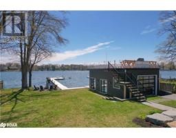 Tucked along a quiet bay on Lake Couchiching, this stunning waterfront cottage—or year-round home—offers the peaceful lifestyle you've been dreaming of. Just minutes from downtown Orillia, this property has everything you need for fun, rest, and making lasting memories. Fully renovated in 2019, the home is bright, open, and full of charm. With 3 bedrooms and 4 bathrooms, there’s space for family and friends to stay and play. The large windows bring in natural light and give you clear views of the water from many rooms. It’s cozy in the winter and a dream in the summer. Step outside and you’ll find what really makes this place special—a boathouse like no other. Sitting right on the water’s edge, this space has two glass garage doors that open to let the breeze in, plus a sliding patio door. It’s perfect for movie nights, games, or just relaxing by the lake. Head up the stairs and discover the incredible rooftop patio with glass railings, an outdoor kitchen with BBQ, cozy firetables, and comfy seating for all. Whether you’re hosting friends or enjoying a quiet evening, it’s the place to be. The lot is wide, flat, and grassy—great for kids, pets, and outdoor games. There’s a waterside fire pit, a long dock for boats and swimming, and even a two-car garage with extra space above for a future bunkie, studio, or gym. Cottage charm. City access. Four-season fun. This is your chance to own something truly special on the lake. (id:50886)